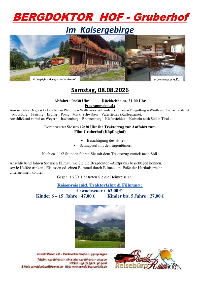 Samstag, 08.08.26 Bergdoktor - Gruberhofbesichtigung Söll & Ellmau