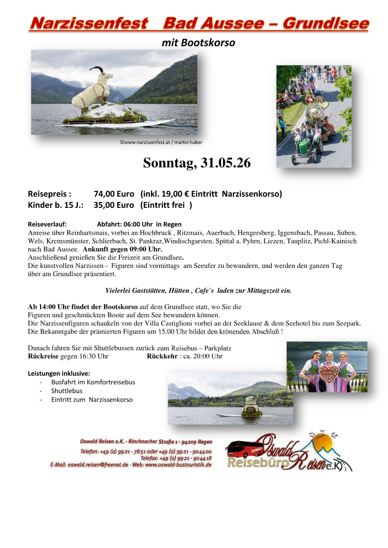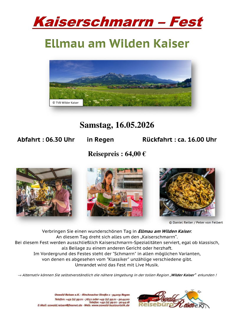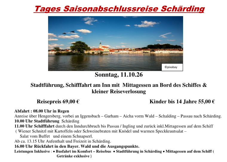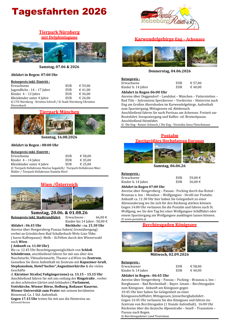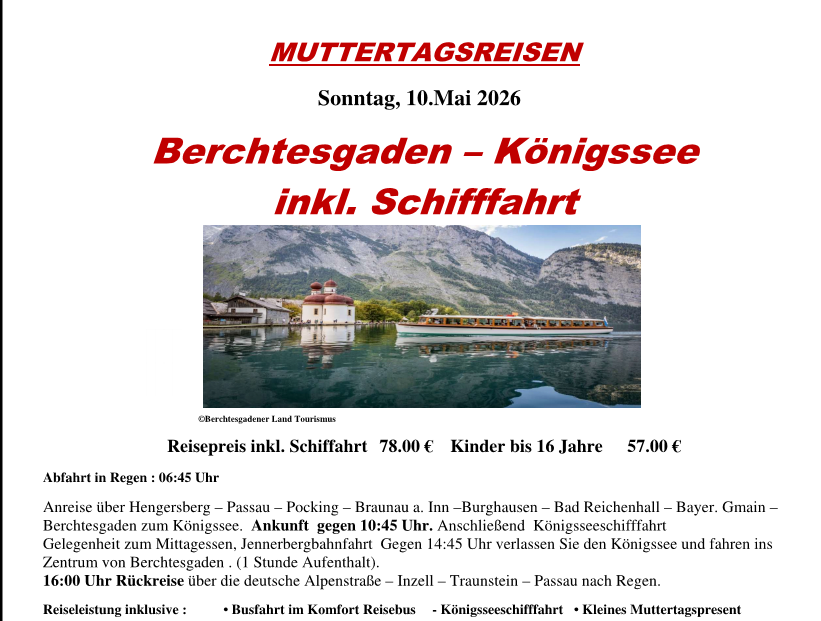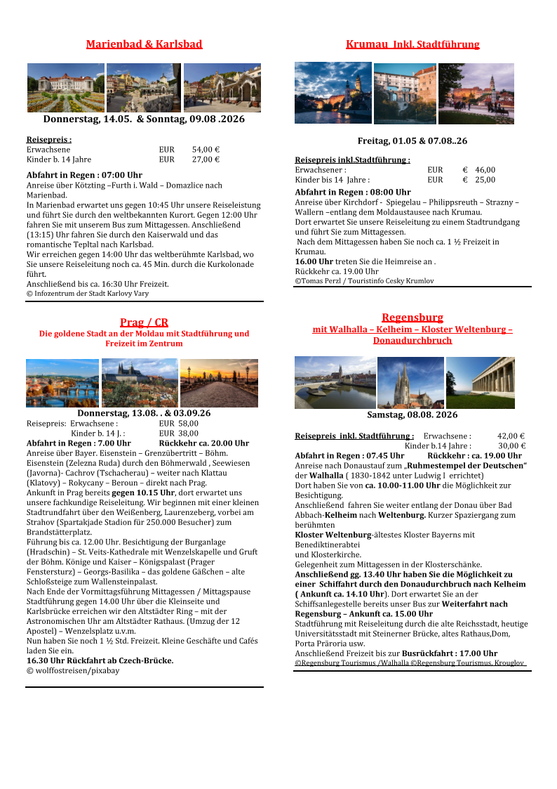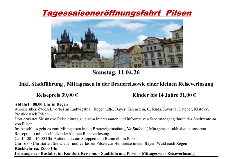 Unser Reiseprogramm für Eventreisen in Regen und ganz Deutschland