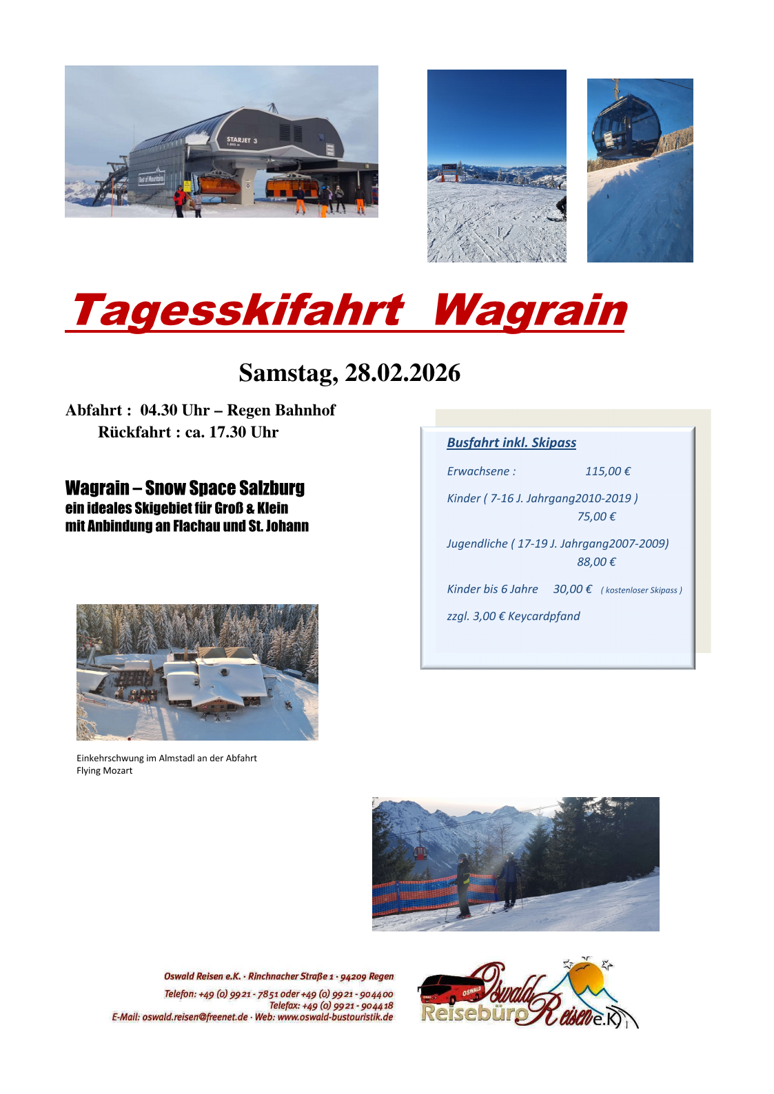 Sa., 28.02.26 Tagesskifahrt Wagrain - Snow Space Salzburg